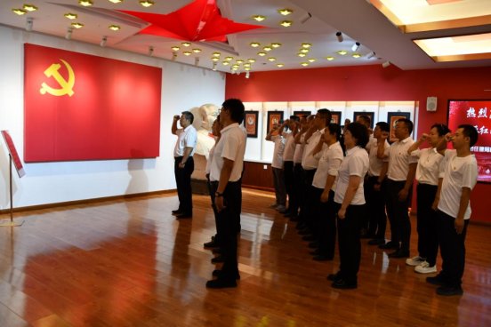 在党旗面前,全体党员整齐肃立,庄严宣誓,重温入党誓词。入党誓词是党和人民许下的庄严承诺,短短的十二句话,字字千钧。全体党员在入党誓词中感受初心与使命,让红色基因、为民情怀发扬光大、永续辉煌。