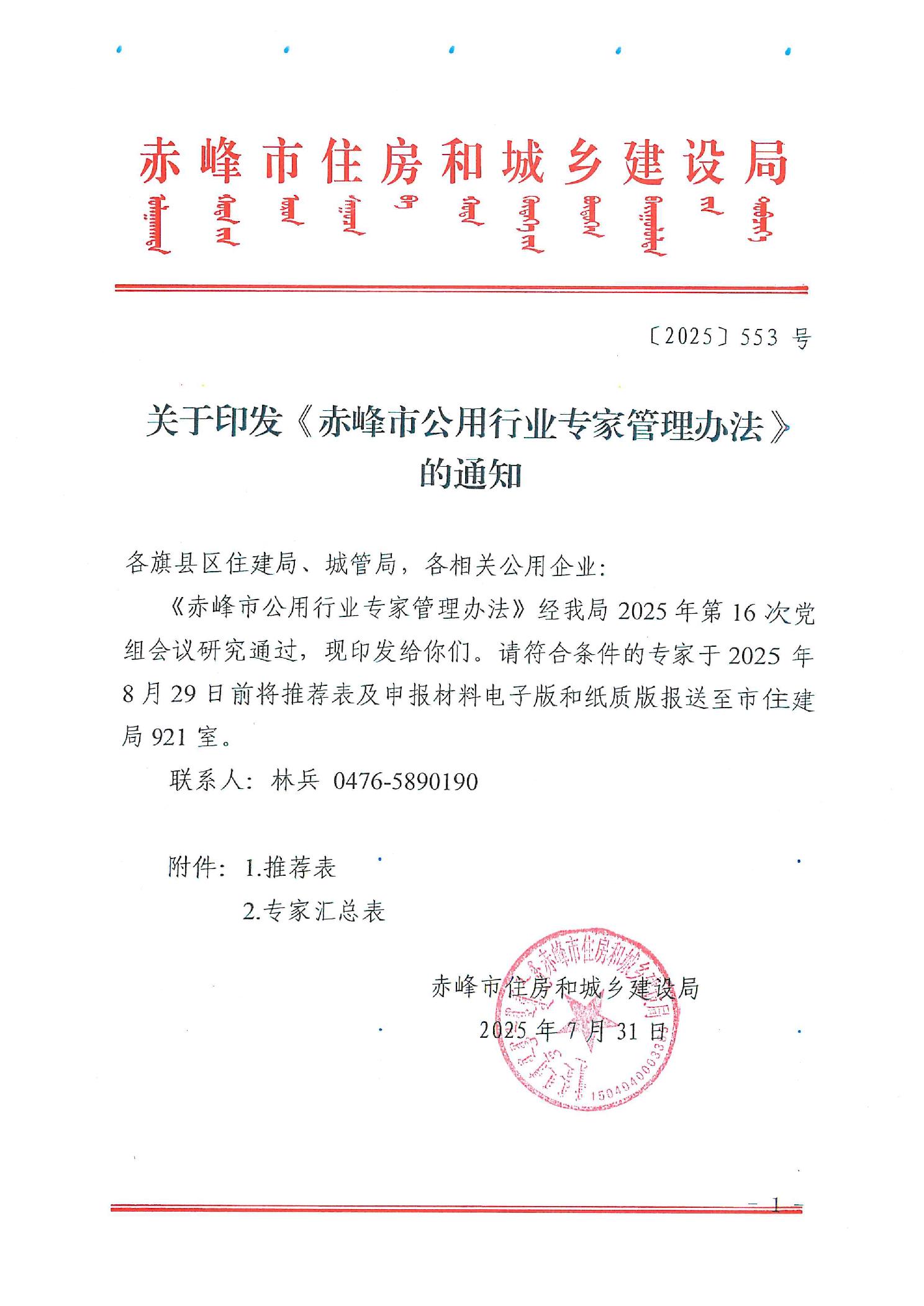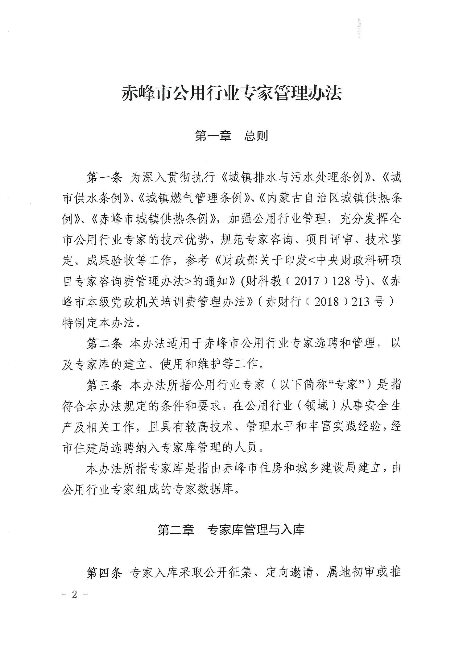 关于印发《赤峰市公用行业专家管理办法》的通知