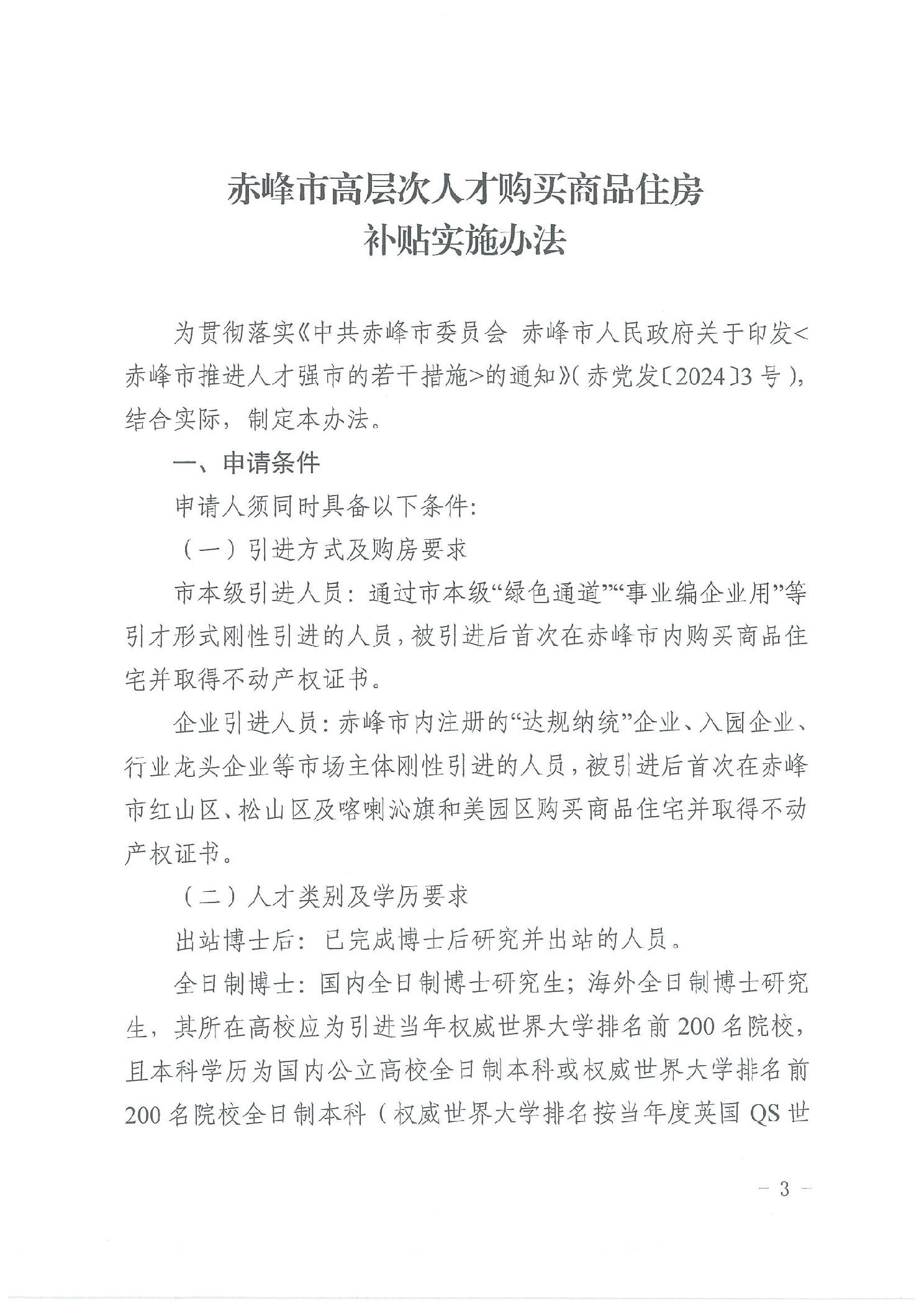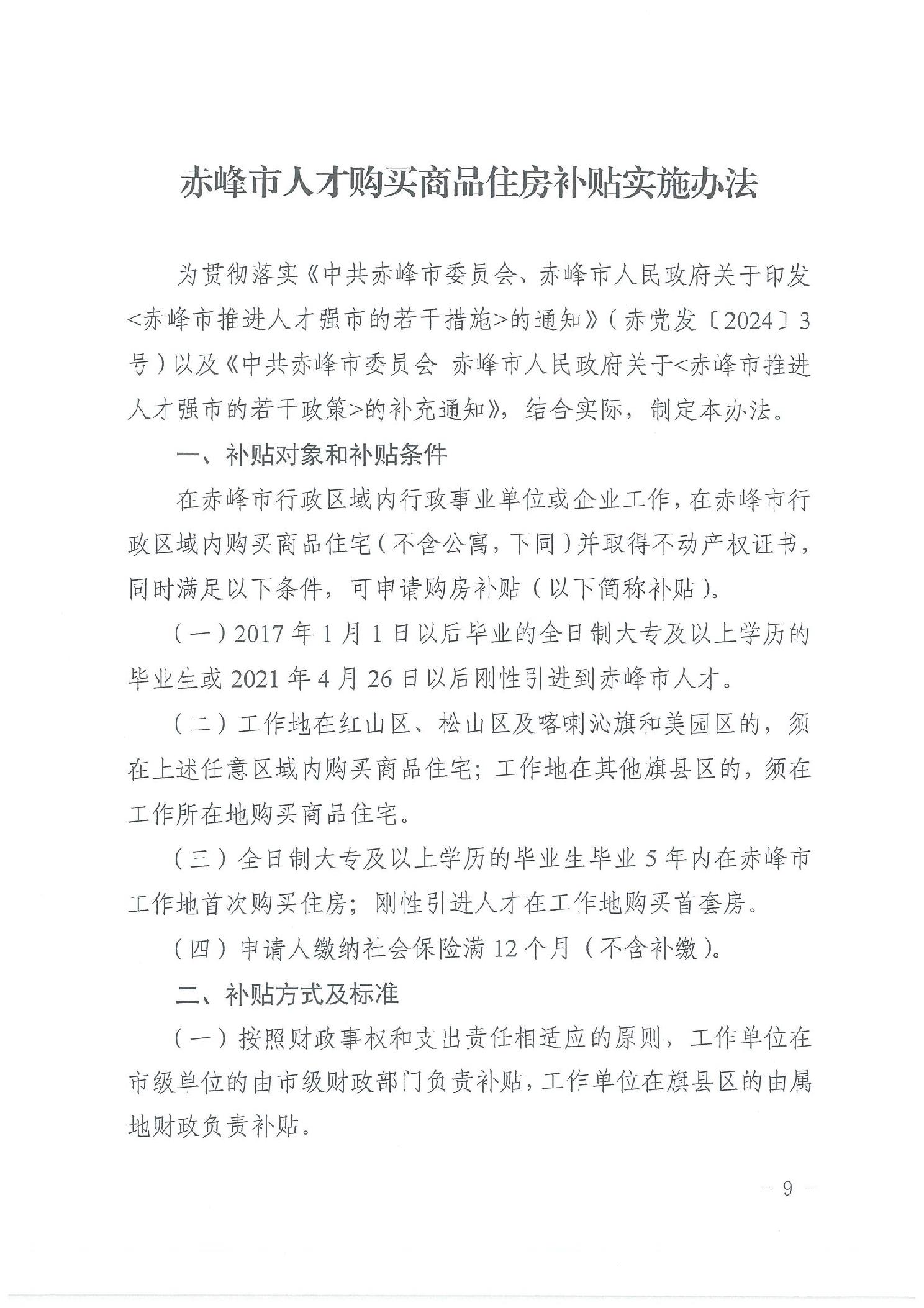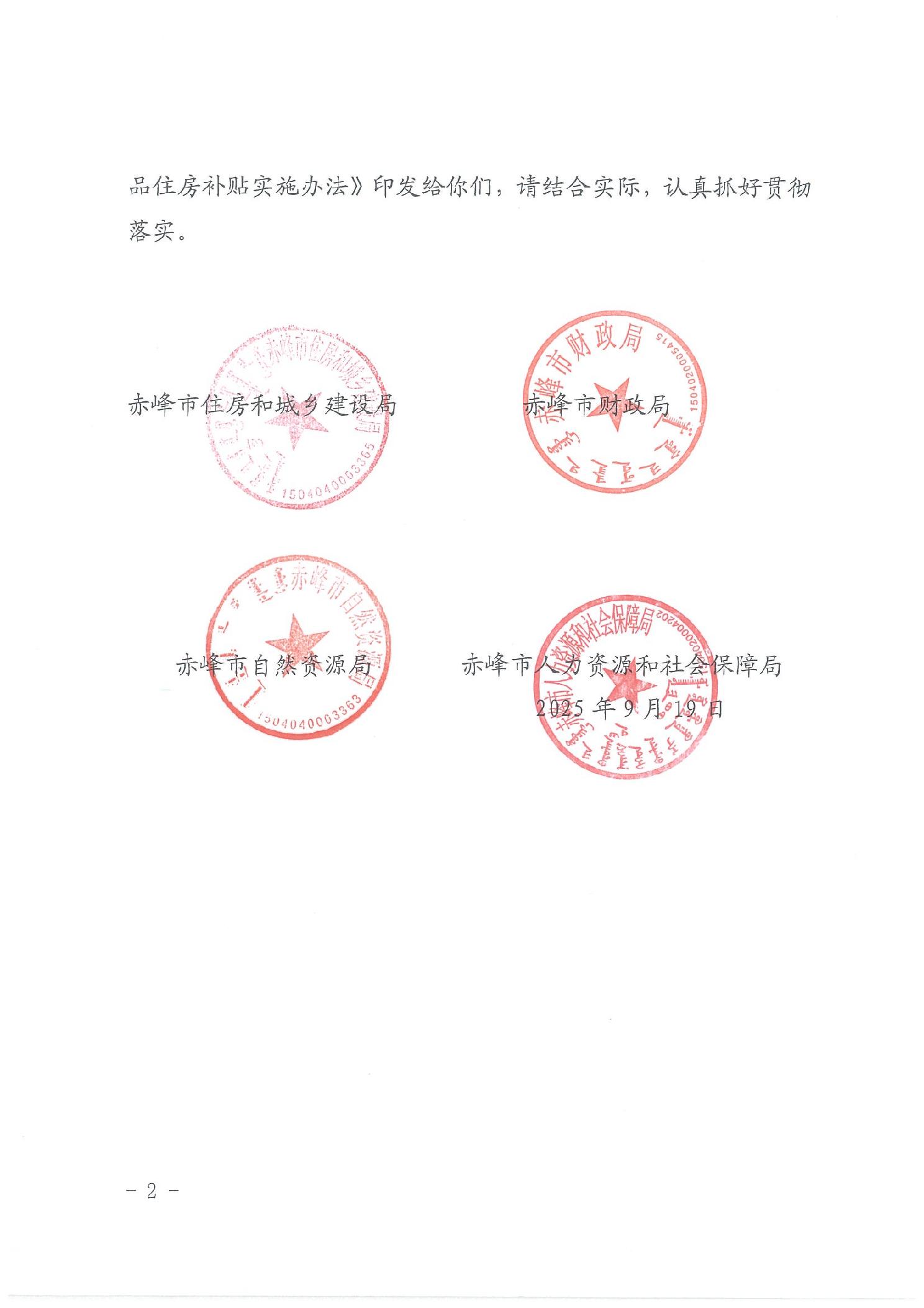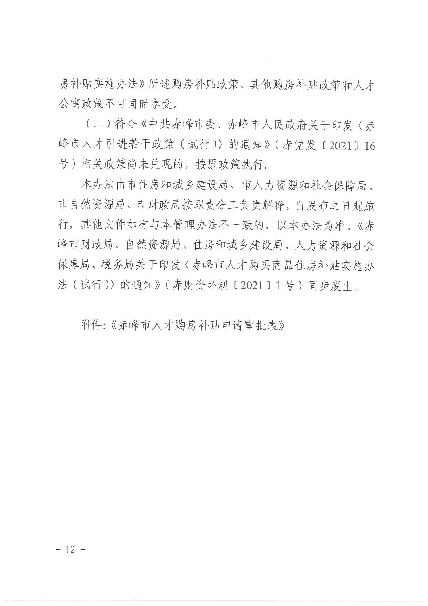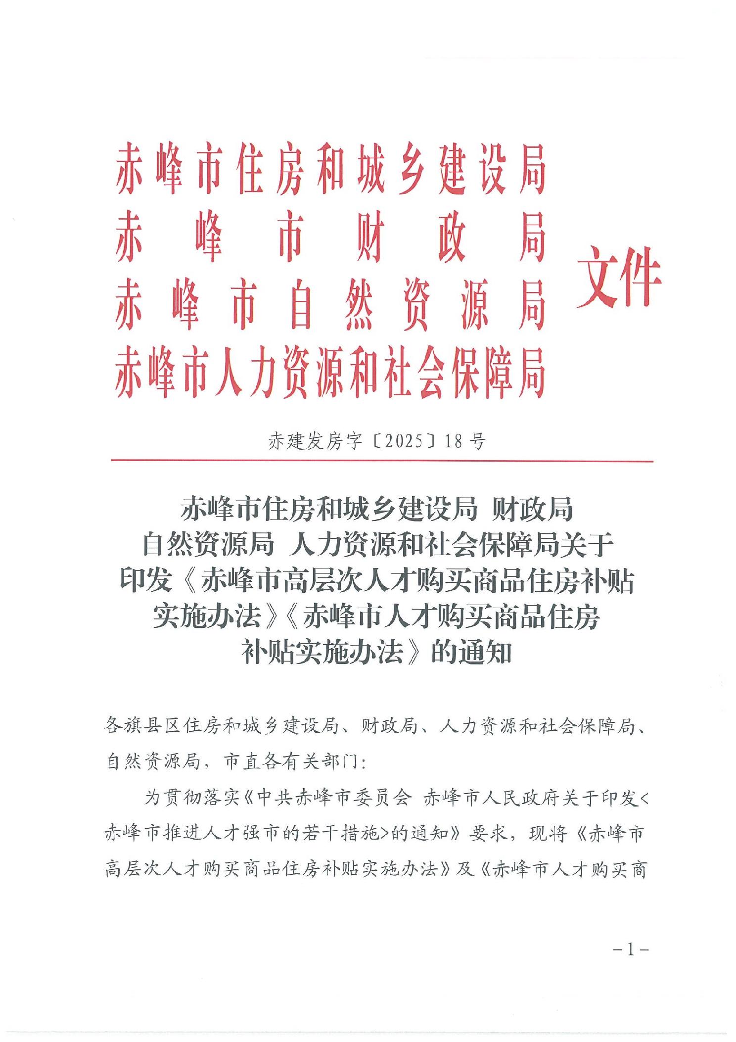 赤峰市住房和城乡建设局 财政局 自然资源局 人力资源和社会保障局关于 印发《赤峰市高层次人才购买商品住房补贴实施办法》《赤峰市人才购买商品住房补贴实施办法》的通知