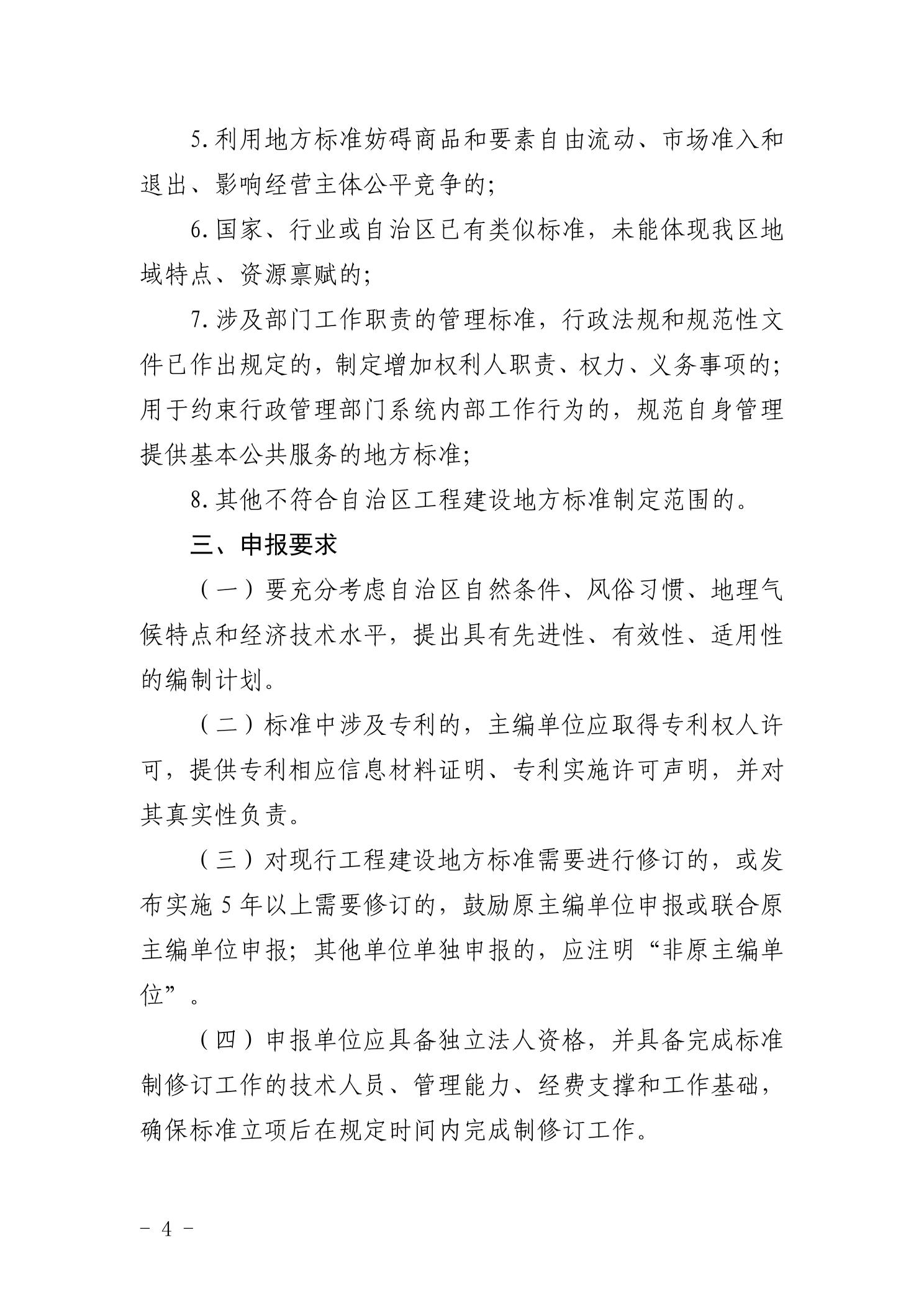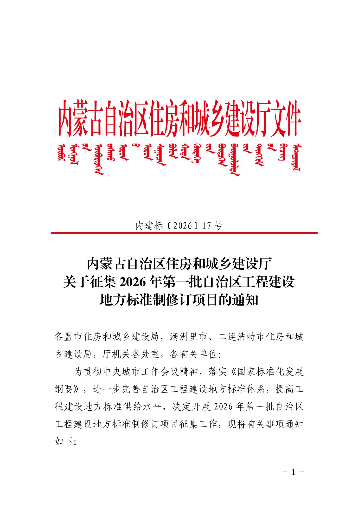 关于征集2026年第一批自治区工程建设地方标准制修订项目的通知