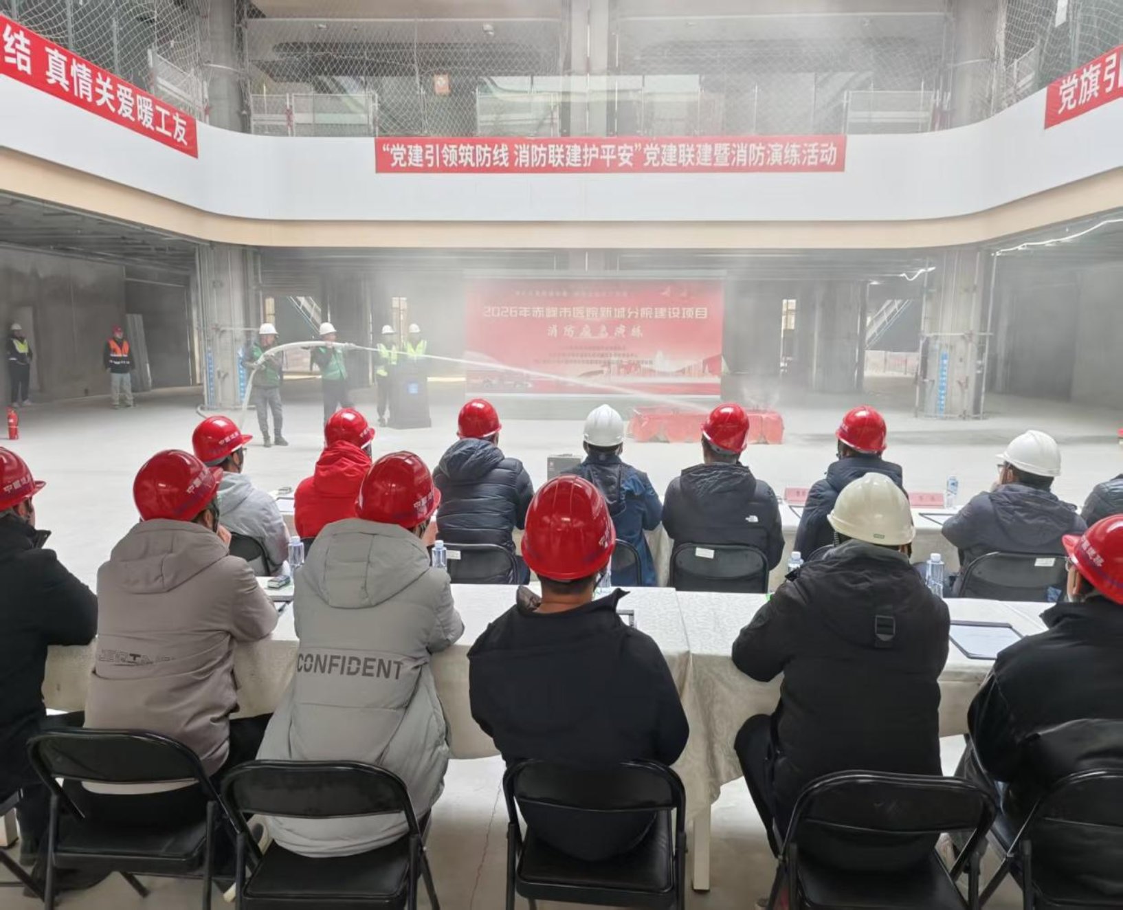 为深入贯彻落实“安全第一、预防为主、综合治理”方针,切实提升应急实战能力,实现检验预案、锻炼队伍、提升能力等目标,1月9日下午,市住建局在赤峰市医院新城分院一期建设项目现场组织开展了消防应急演练活动。本次活动由市住建局主办,市质安中心协办,中国建筑第八工程局有限公司承办,市直重点房建项目等150余人参加了观摩和演练活动。
